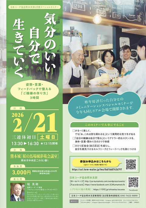 あいほっとスペースくまもと 2026年2月度イベント 気分のいい自分で生きていく〜 姿勢・言葉・フィードバックで整える「ご機嫌の作り方」〜